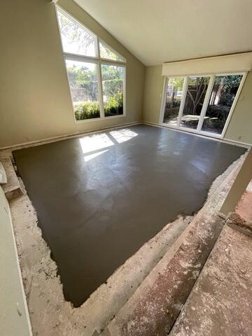 Scope of Work: The team removed and replaced 252 square feet of the damaged slab, installing a new 5-inch-thick concrete slab with #4 rebar and a 6-inch base rock for enhanced structural support. The slab was finished with a smooth, natural color that matched the existing floor. This process ensures that the new slab is strong, resistant to future damage, and fully sealed against moisture intrusion.