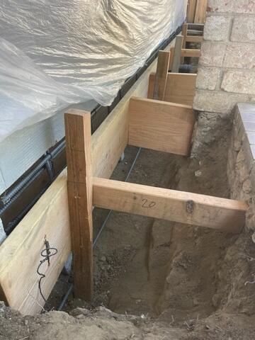 - Shoring and Demolition: Proper shoring was installed to temporarily support the home while the damaged foundation was demolished and removed.
