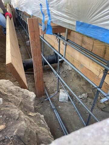 - Forming and Rebar Installation: The team formed the new foundation area and reinforced it with #4 rebar to enhance the structural strength.