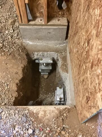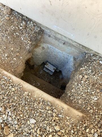 The crew excavated around the foundation to install Push Piers at strategic locations as per the job drawings. These piers were fitted with low-profile galvanized brackets to provide stable support. The piers were driven deep into the soil to reach stable, load-bearing strata. This process helped transfer the home’s weight from unstable soil to the stable ground below. - Hydraulic Lift System: