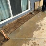 As part of the restoration project, a portion of the existing concrete walkway was removed and replaced to allow for the push pier installation and ensure a level entryway that complemented the newly stabilized foundation.