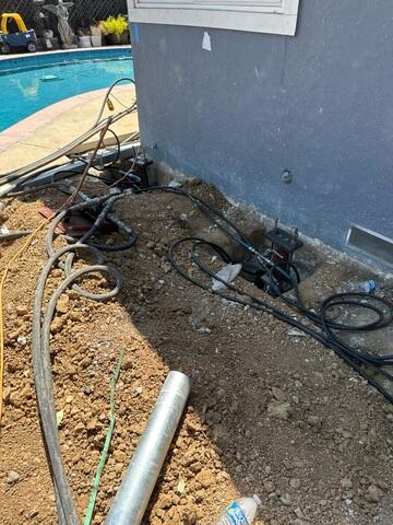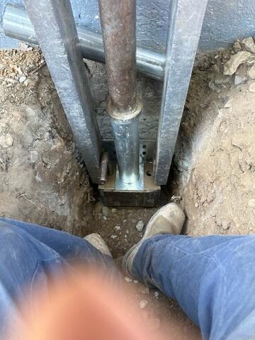 The first step involved excavating up to 3 feet to install galvanized Push Piers, using low-profile brackets designed for flat land structures. These piers were driven to depths up to 80 feet, reaching load-bearing strata to provide stable support for the foundation. Push Piers are ideal for residential applications and help lift and stabilize foundations affected by settlement. - Hydraulic Lift System: