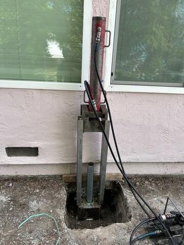 Push Piers: To address the foundation settlement, galvanized steel Push Piers were installed. These piers reached stable soil beneath the foundation, providing the necessary support to both stabilize and lift the home back to its original position. This process mitigated further movement and restored structural integrity.