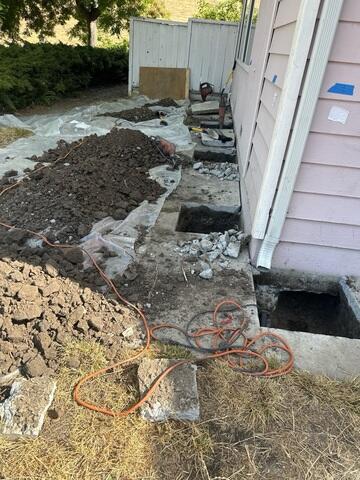 Concrete Removal: Old, cracked concrete around the home was removed to ensure a clean and level foundation for the next phase of the project.