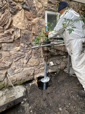 - The installation process involved excavating the soil up to 3 feet and driving the piers to a depth sufficient to hit stable strata. This ensured that the foundation would be securely supported and stabilized against future movement.
