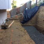 In order to stop the hill from collapsing and sliding down onto the customer’s home, a retaining wall was needed. Our structural specialist, Steve, designed a plan with an engineering company and after many delays with the city, work began. Unfortunately, there was a major delay due to rain and this caused even more danger for the customer and his home. At one point, we were not able to pour the concrete so a team had to go to the home to brace the portion of the hill at his backyard until the project could be completed. Once the rain slowed down, our team was able to complete a beautiful job on this customer’s home.