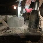 - Push Piers Installation: To further stabilize the foundation, we excavated specific areas around the foundation perimeter to install Push Piers. These deep foundation piers were installed using low-profile brackets that provide additional support to prevent further settling. Each pier was driven to stable strata that will better support the home’s weight.