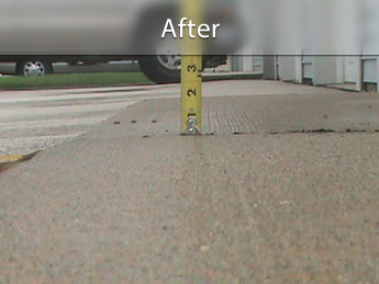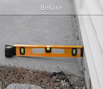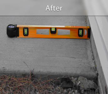 A sunken patio can be a safety liability and diminishes the aesthetic appeal of your outdoor area. This example shows a patio that was lifted back to its original position so it is no longer dangerous and unsightly.