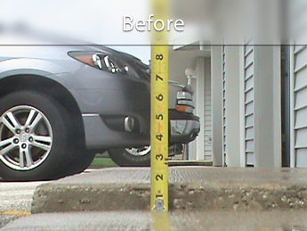 In this example, parking the car in the garage required driving over a major bump. Lifting the driveway apron made parking the garage less of an ordeal.