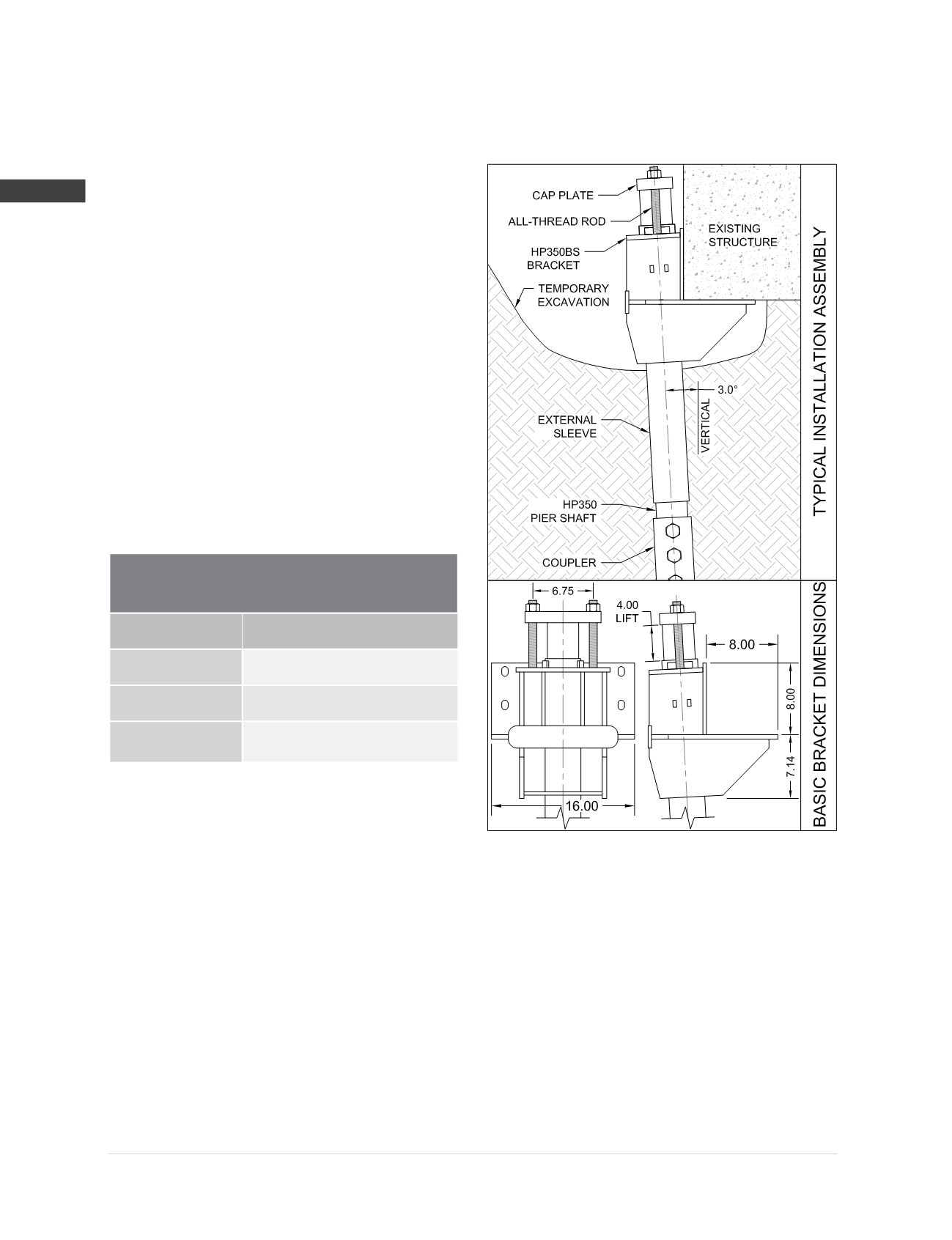 HP350BS Bracket Specifications and Capacities