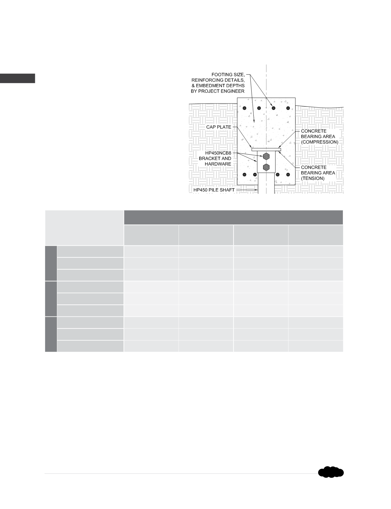 Concrete bearing values provided are the uniform bearing stresses required to achieve the full corresponding bracket capacity. Allowable