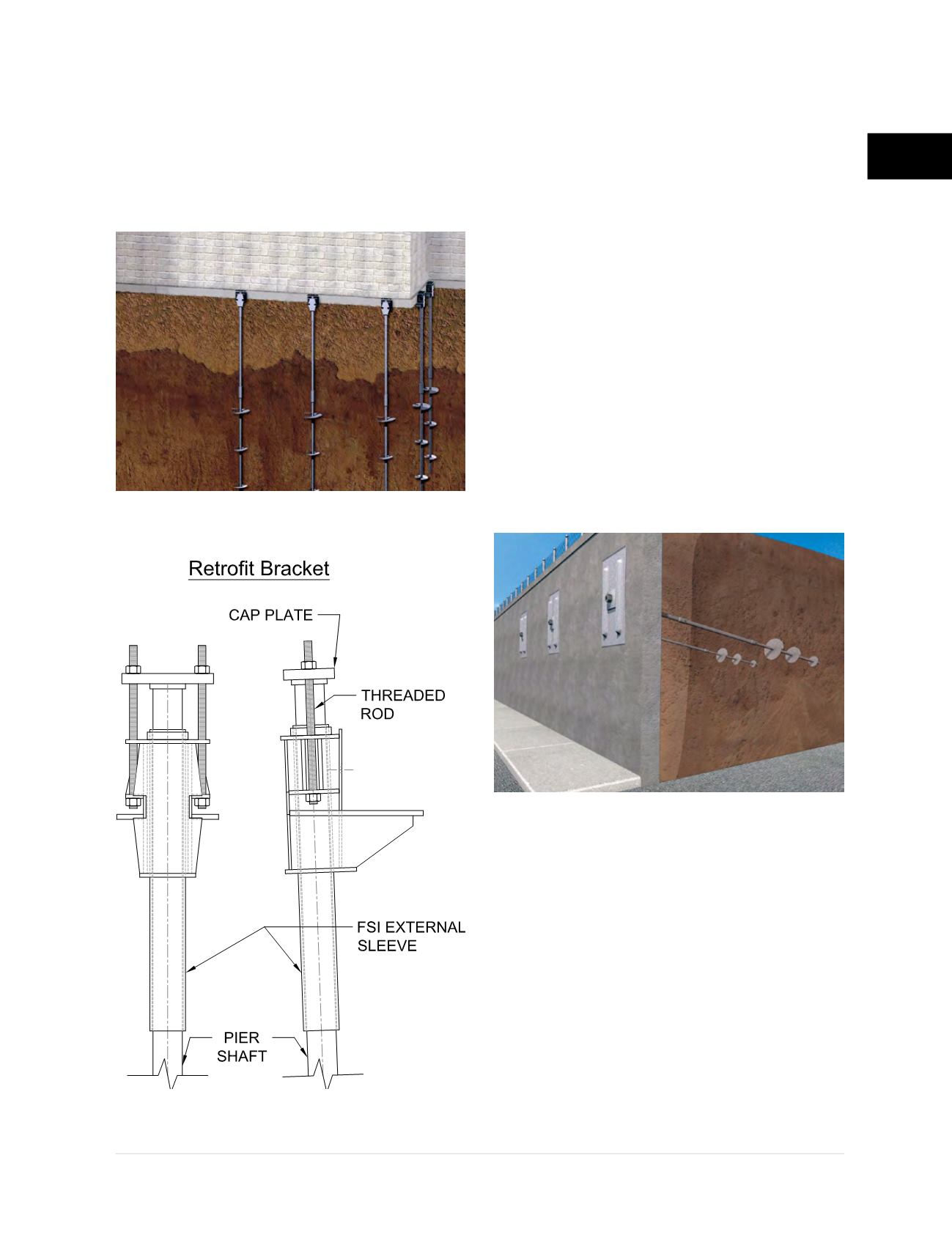 the wall. Helical piers with retrofit brackets are