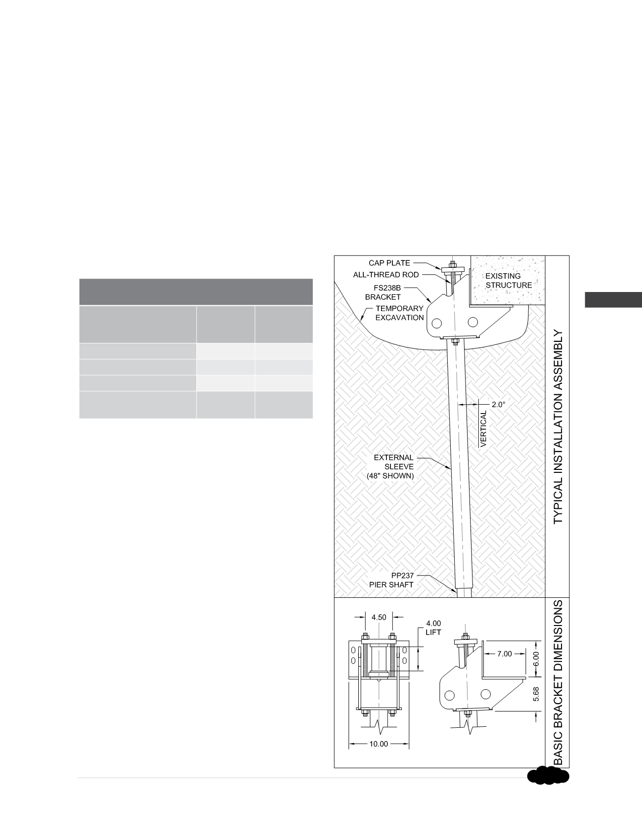 FS238B Bracket Specifications and Capacities