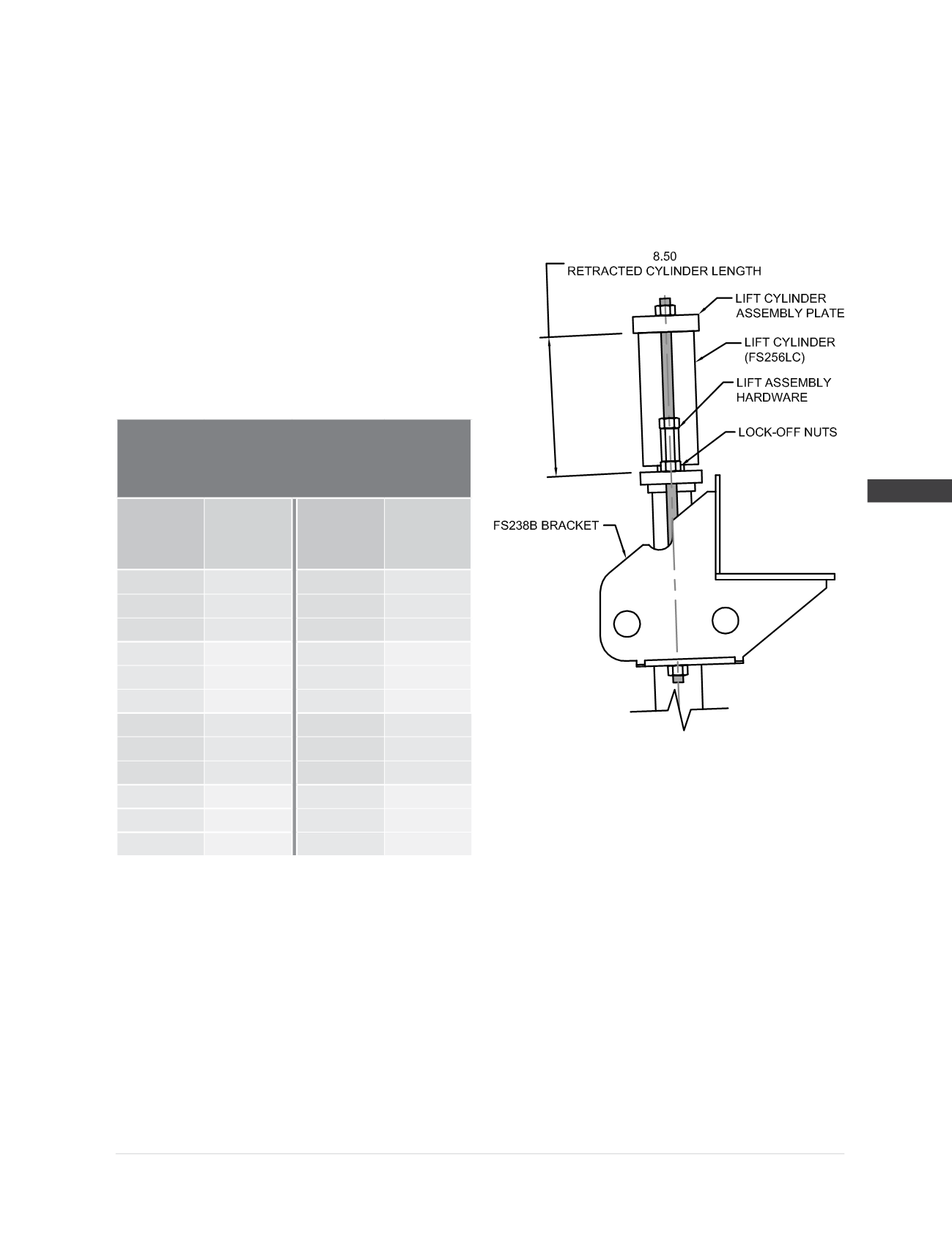 Model 238 Lift Assembly Specifications
