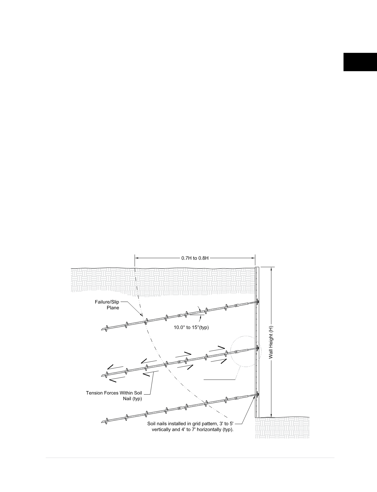 • Soil nails are typically shorter than tiebacks for