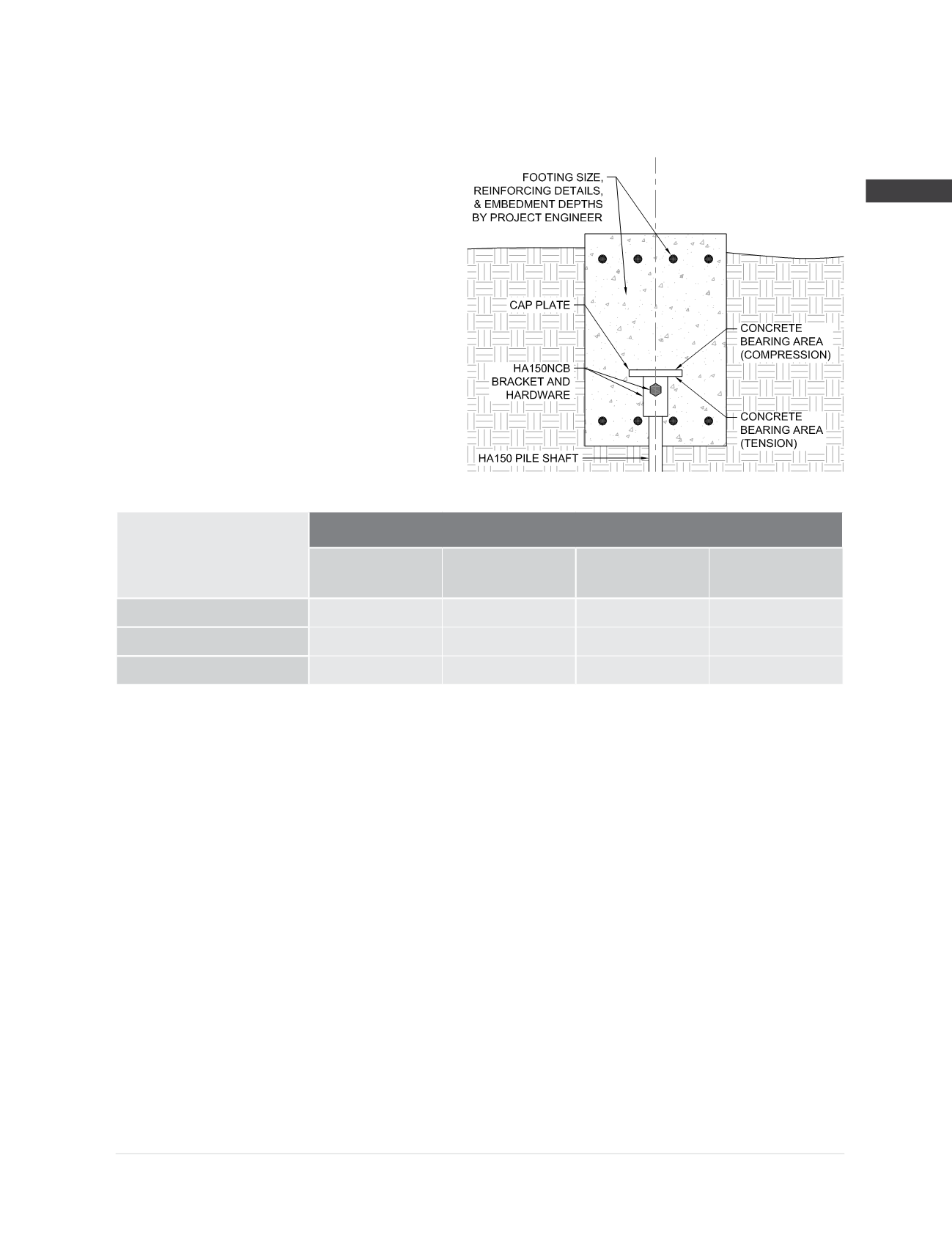 Concrete bearing values provided are the uniform bearing stresses required to achieve the full corresponding bracket capacity. Allowable