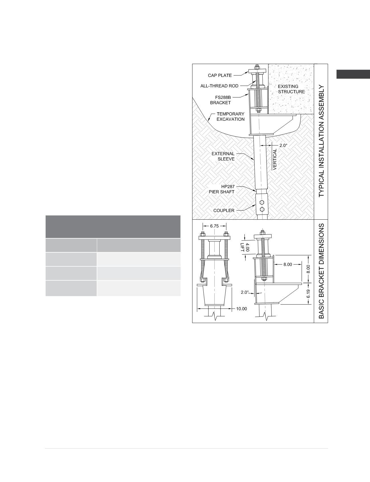 FS288B Bracket Specifications and Capacities