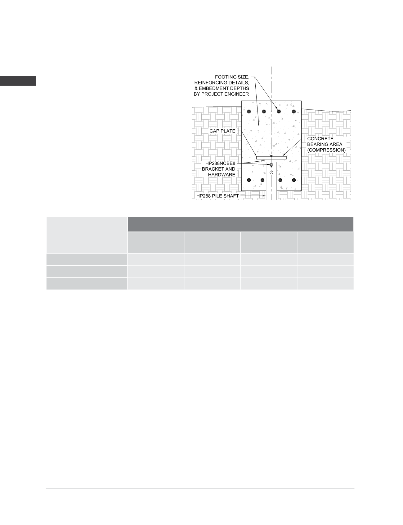 Concrete bearing values provided are the uniform bearing stresses required to achieve the full corresponding bracket capacity. Allowable