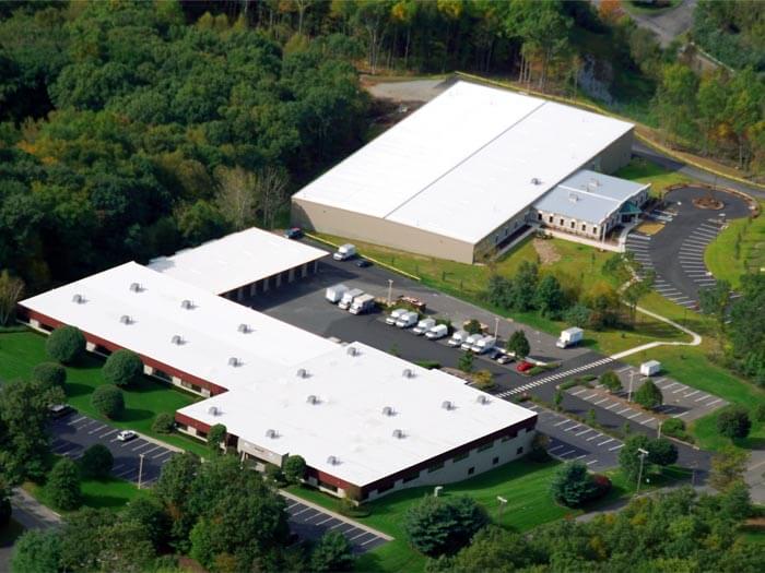 Aerial view of the Basement Systems and Cleanspace International Headquarters -- a 92,000 square foot facility located in Seymour, CT.