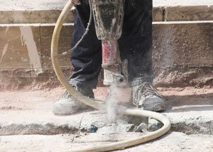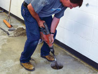 To perform a job like this, all home furnishings, floor coverings, and interior walls must be removed. Then a crew jackhammers the existing floor into small pieces and removes them by hand.