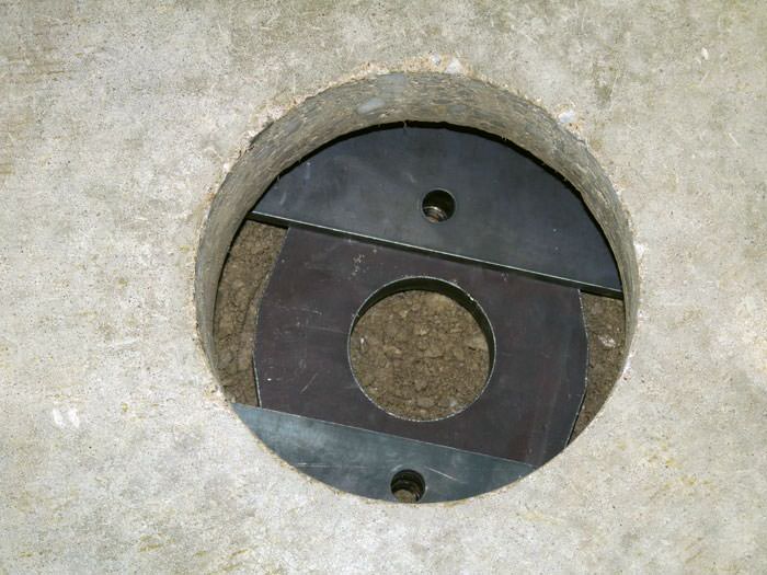 These steel tubes are the real strength of the foundation pier system -- and are responsible for transferring the home weight to strong supporting soils.