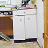 Concrete slab piers being used underneath a floor to help stabilize the floor permanently.