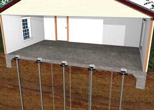 Notice how the piers can extend deep below the floor, extending until they reach competent supporting soils.