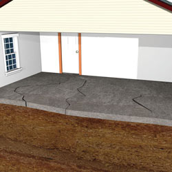 There are also times where the slab floor can lift or sink independently of the walls. Concrete slab floors crack and settle when the soils underneath them shrink, settle or wash away.