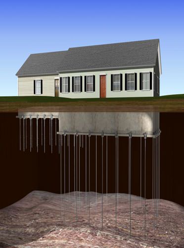 Push Piers stabilize foundations by transferring the weight of the home deep below the foundation, reaching to bedrock or competent strata.